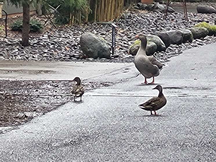I met with some friends out in Boring this afternoon, and on the way into our meeting place, I was greeted with a duck and goose jam (as opposed to a bison jam in Yellowstone).