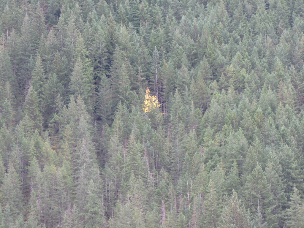 We stopped at the big curve at the Rockwood Viewpoint to check out the color along the hillside. Of course, I loved this spot of yellow among all the green.