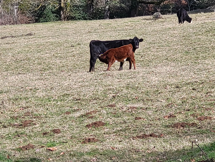 And lest you think that was the end of the story… nope! After dark, we heard Bessie and Lani Moo bawling again. Watdaheck? So back down to the pasture we drove. And this is what we found: Hōkū and Kiko had somehow gotten out of the corral and their moms were very upset. Naughty pīpī!