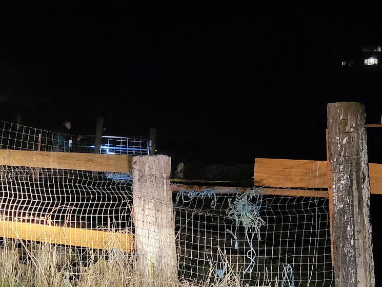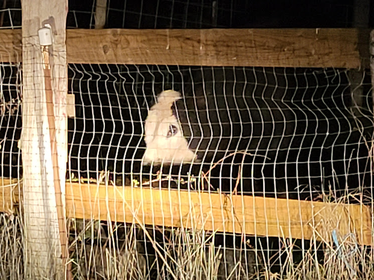 We immediately called Jake, but he was up in Rhododendron and couldn’t leave right away (he was on a job). So we called our next door neighbors, who came over right away to help us. They came prepared, and after walking the fence and discovering that a tree had come down over it and broken it, which is how Kiko got out, Nolemana opened the gate to let Kiko in and keep the other pīpī in, but Kiko wasn’t having any of it. He even tried to nurse through the fence!! Silly pīpī!