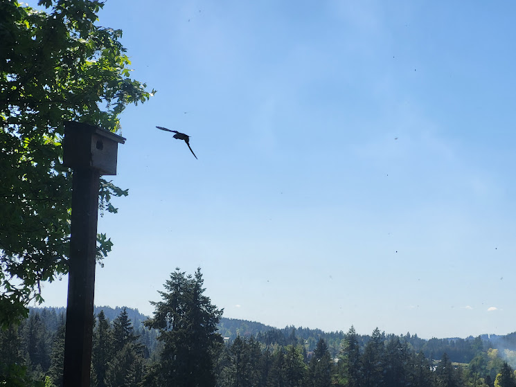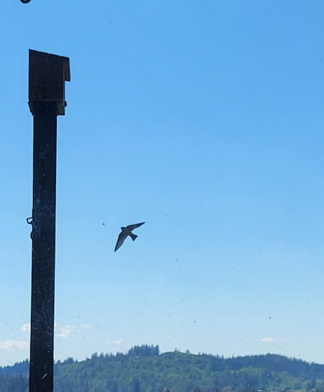 … and the Violet-Green Swallows are checking it out. I hope they nest here; the last time we had babies, they died in the horrendous 116° heat. I was devastated.