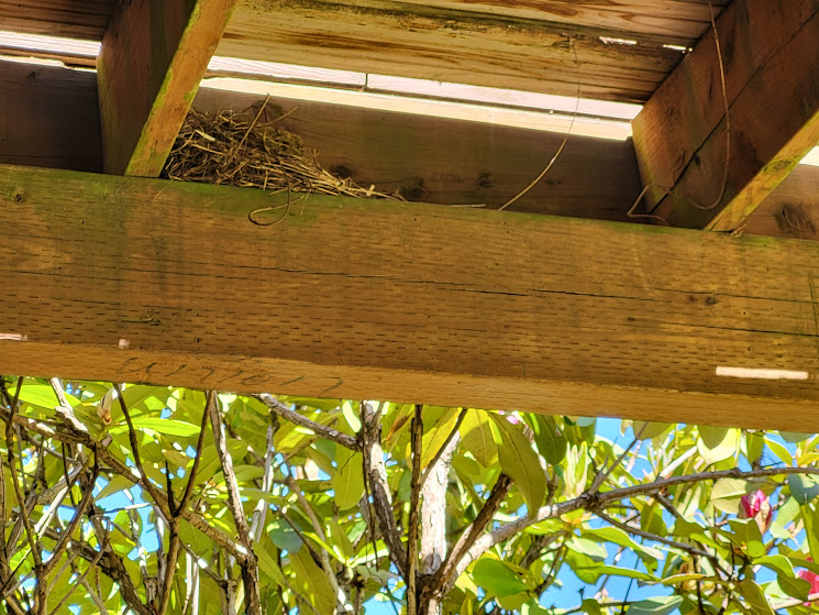 Robin nest at my friend’s house today. I didn’t see Mama, though.