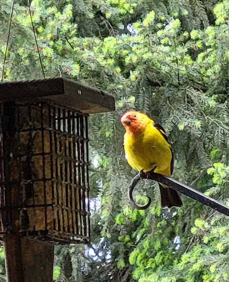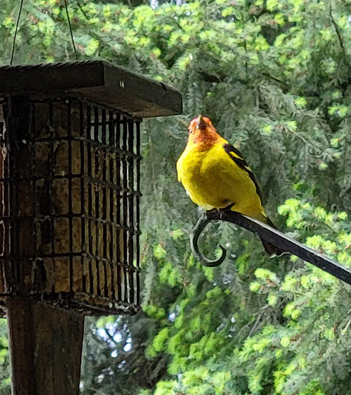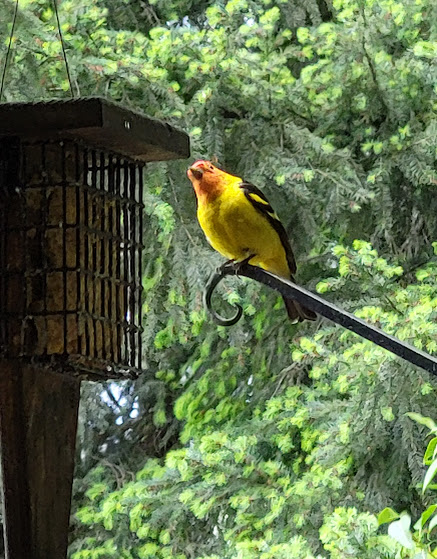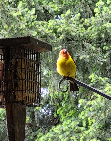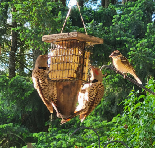 Anden! Left to right: Female Flicker, male Flicker, and female Grosbeak!