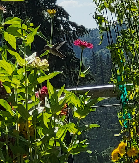 I’m really glad they stick around all year…and I have to refill the feeders at least once a week, which is surprising with so many flowers around.