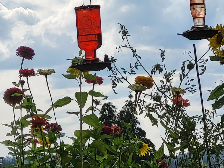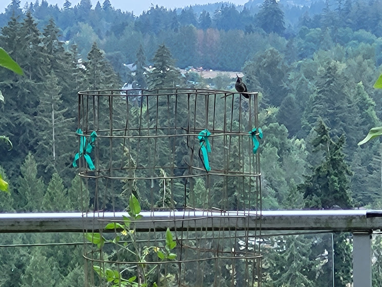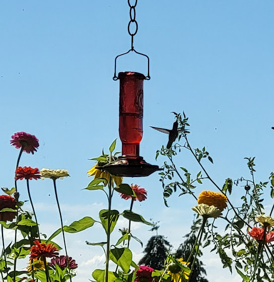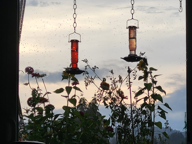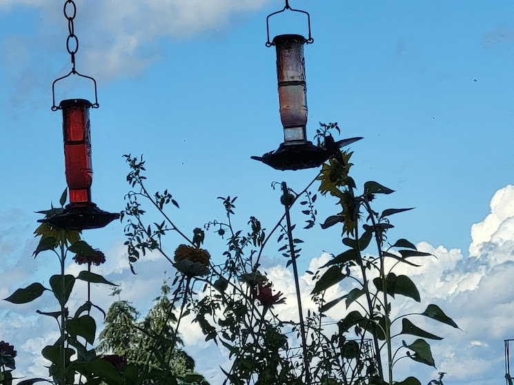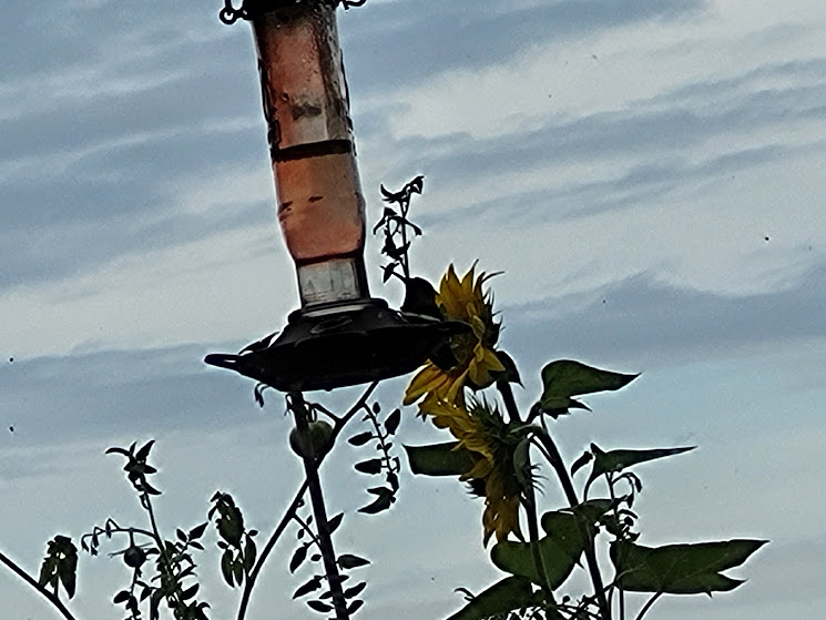 I wonder if Kiko is reaching the bovine equivalent of teenage rebellion. I don’t know if you got to enjoy the thunder and lightning on 8/17 amidst your power outage. G *loves* thunderstorms, Midwest boy that he is. We were lucky that we didn’t lose power and got to enjoy the free fireworks show. I especially liked your 8/18 hummer photo with his/her wings and tail outstretched.