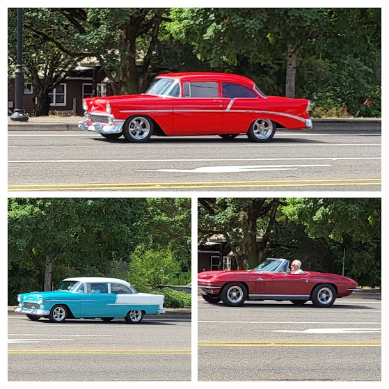 When I left the coffee shop, there was a parade of old Chevys going by!! Two 1955s!