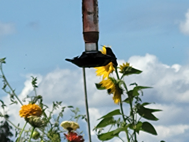Yeah, he sure did. They do love the flowers near the feeder. I’ve never done that before but will from now on.