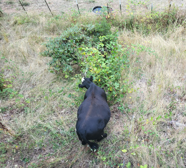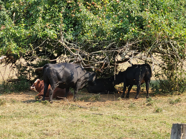 When we got back home, the cows were underneath the apple tree, munching on the fallen apples as if nothing had happened.