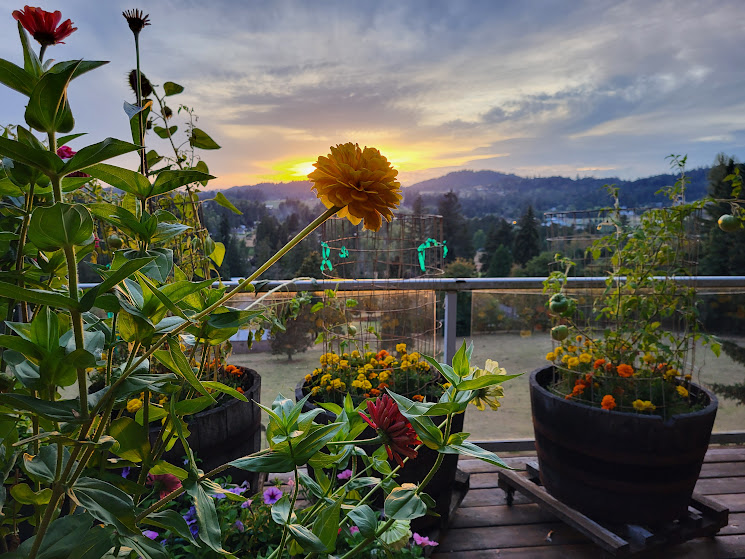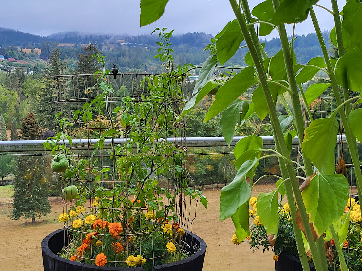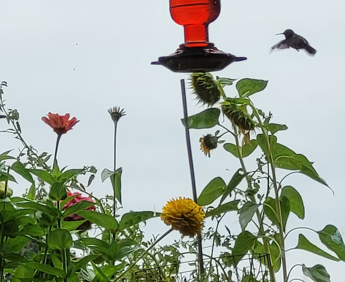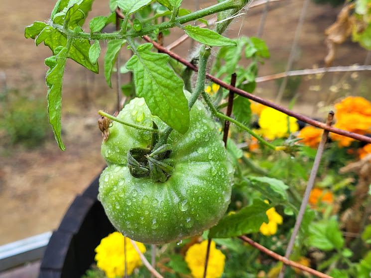 Kalakoa on pōpoki sheets.Daily hummingbird.A perfect Zinnia.ʻEkolu daily pīpī.Raindrops on a green tomato. So grateful for the rain!Look how long the Love Lies Bleeding/Amaranth is getting!Waiting for the apples to fall.