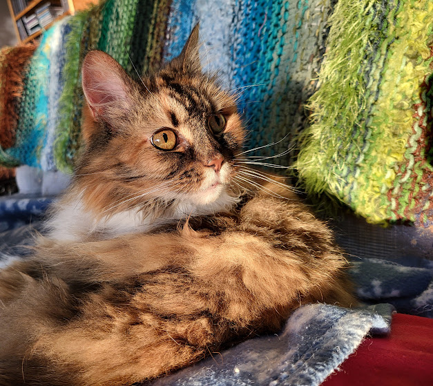 Lani Moo looks like she’s ready to defend her territory. (I not goin’ say she like beef.) The first photo of Kalakoa looks like she’s posing as a feline fatale–very coy. Funny what the hummers like and don’t like–I wonder why they prefer the sunflowers to be farther away. I share Michelle’s admiration for your sunset photos–maika`i no.