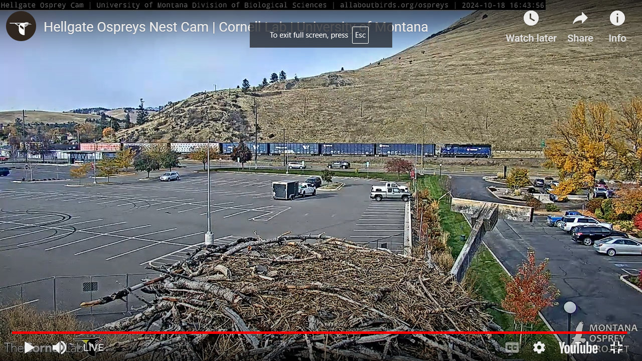 A blue train at the Hellgate Osprey webcam. There was even a blue caboose!