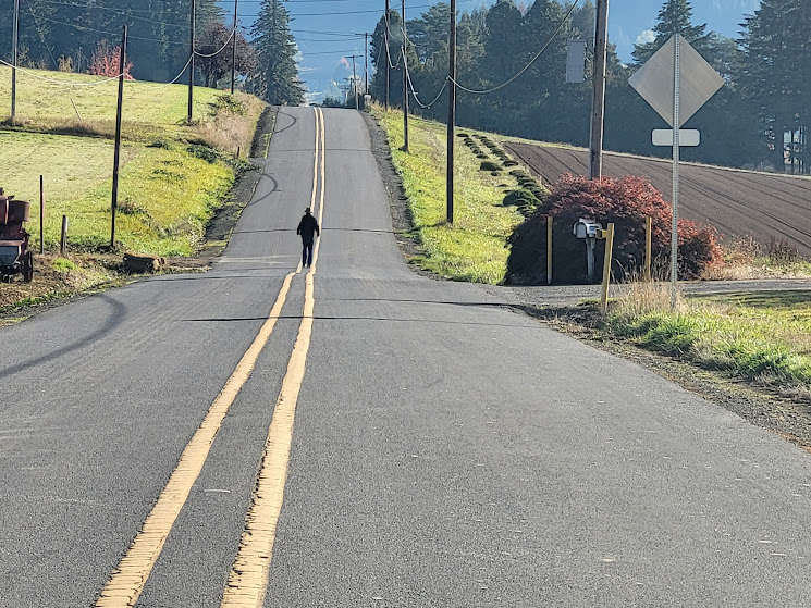 I know, fancy, yeah? I talked to a friend who says the walking guy does this every morning… he always moves over for traffic, though. Good thing!