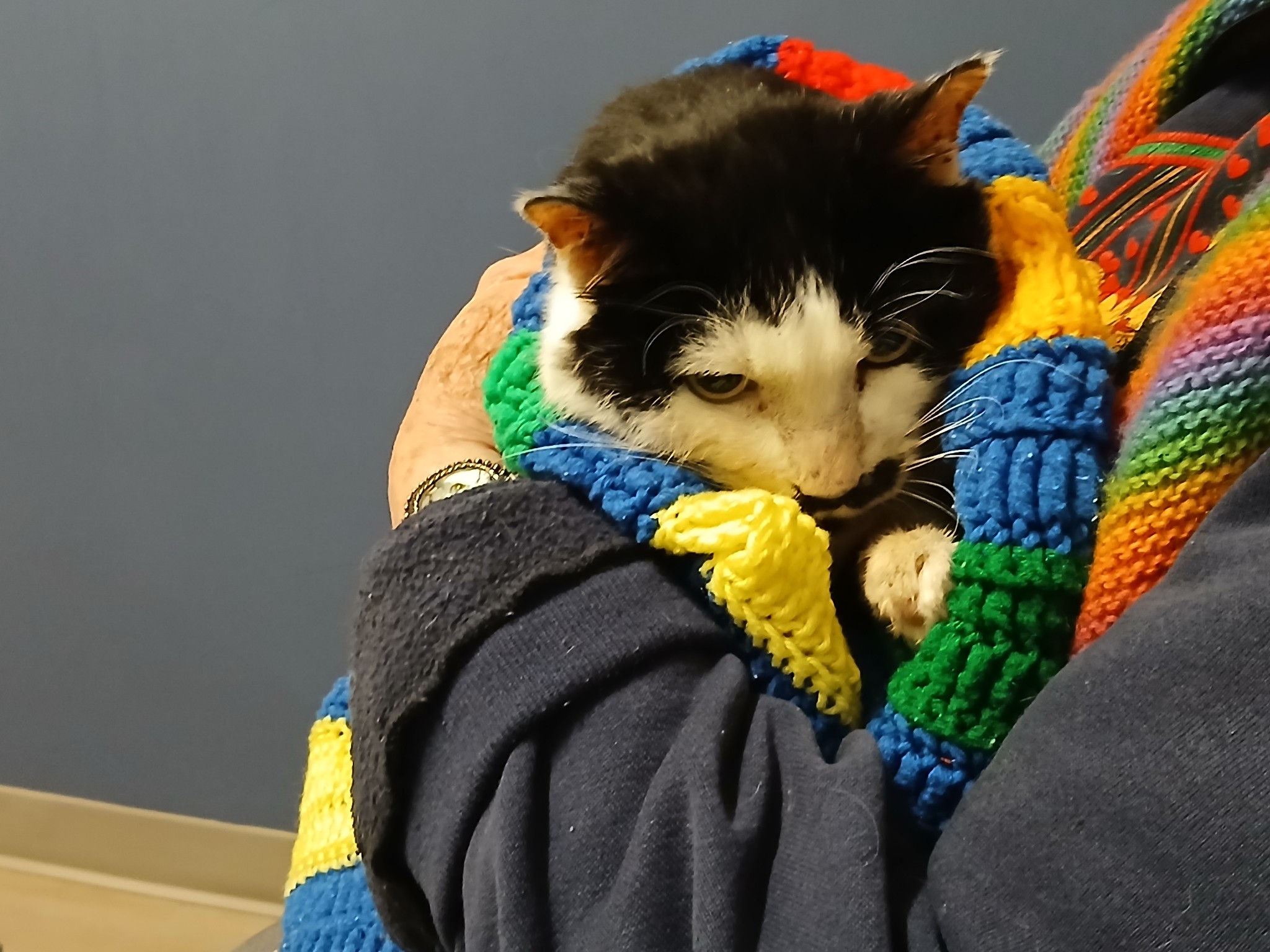 So on December 11th, we made the last sad trip to see Dr. Zambelli, who was just as sad as we were. She and her staff were just wonderful; they provided a beautiful blanket for Keola, and I was able to hold him for the whole time. He stayed calm and quiet, and before Dr. Zambelli came in, he was exploring the room like he usually did.