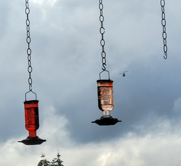 Terrific photos of your hummer and the sunset. I wonder what they think of helicopters. Do you know hummers start mating and nest building as early as November or December? We saw four hummers in our dogwood tree yesterday, so we did some research on some of the behaviors we saw. They are endlessly fascinating.