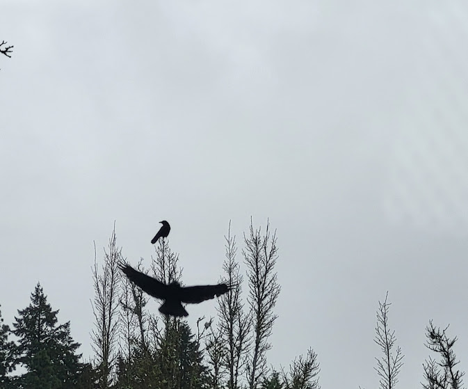On January 3rd, I took Nolemana for his retinology appointment in Lake Oswego. As usual, I waited in the car, knitting, while he was inside. I was happy to get a photo of these crows.