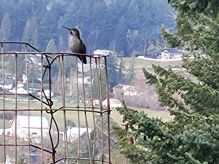 Turn up your volume to hear the daily hummingbird chattering at me!