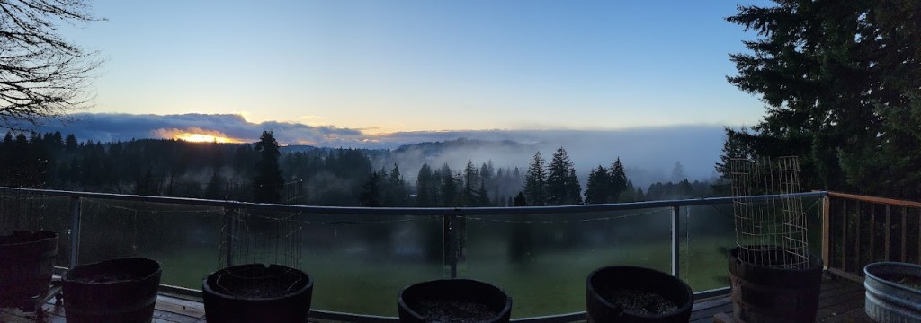 I love that you have that wonderful view of Happy Valley so you can see the fog from above. I love that low-lying fog that highlights the trees. Did I ever talk to you about the book “Fog Magic”? It’s a children’s book from the ’40s, but I still love it.
