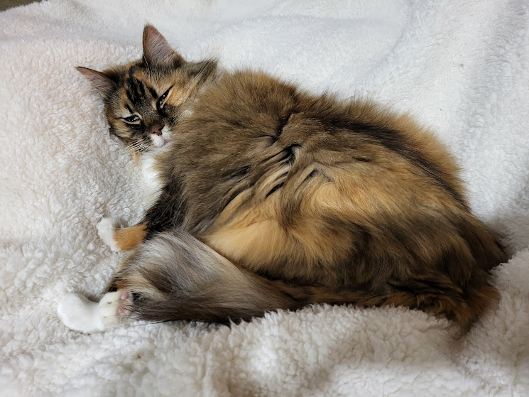 Kalakoa is such a beautiful kitty. And so tolerant! Brushing her side fur out like that–she looks like she’s thinking “There had better be a treat in this for me, Mom!”