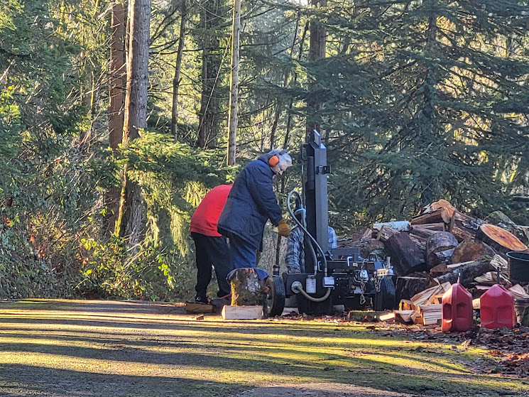 We rented a wood splitter and Bob and his grandson helped Nolemana to get it all split and piled up for my friend who only heats with wood. I provided moral support. They ended up with about 1 1/2 cords after working all day long.