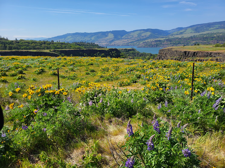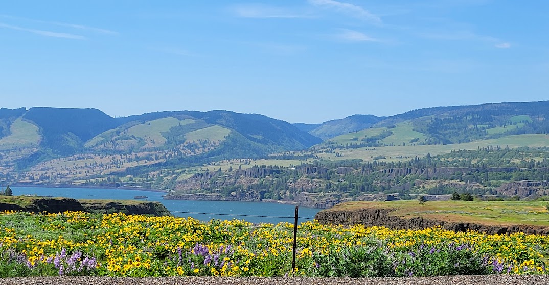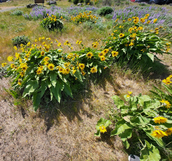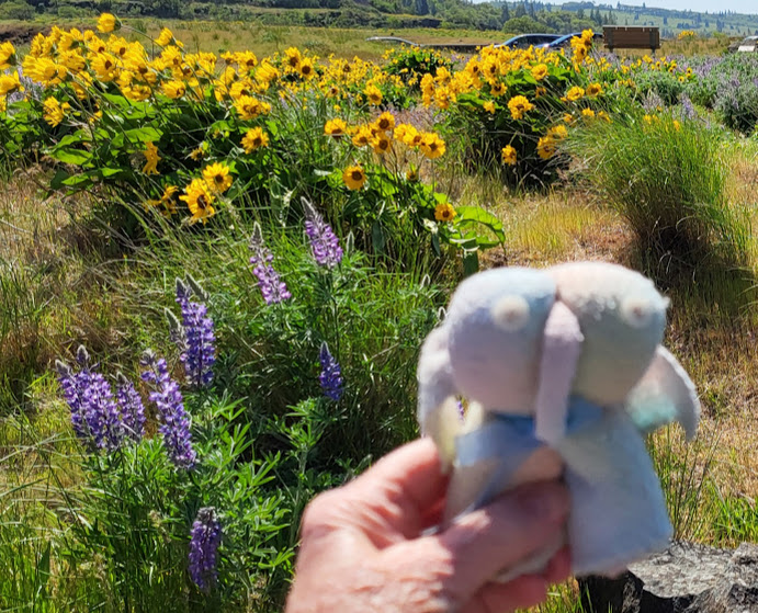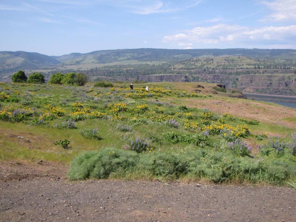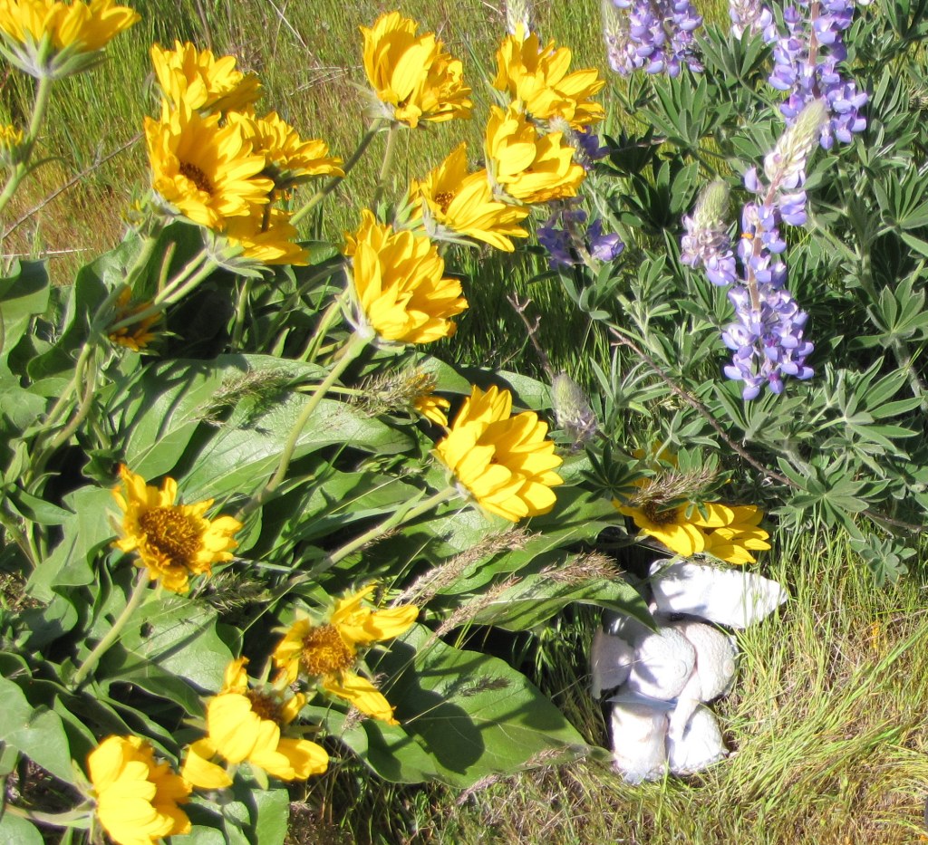 I’ve learned first hand that grief has its soft edges, and it also has hard edges. I still feel the jagged ones about my dad’s suicide, even though it’s been over fifty years now. I’ve been feeling the sharp edges about my special friend, Carol, for the past week, too; it’s hard to believe that it’s been almost four years now since she walked through that door without us all. Because the edges have been so hard to bear, I suggested to Nolemana that we drive up to Rowena Crest, knowing that the Arrowleaf Balsamroot and the Lupines would be at full bloom. Carol loved it there so much, and I wanted to not only go in her memory, but also hoped that somehow she’d be able to be there with me. I knew I’d cry, and I did, but it ended up being a good decision to go.