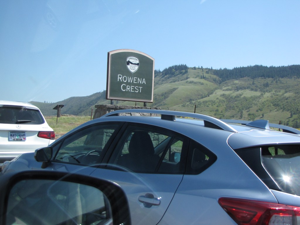 We got up to Rowena Crest, and ho da windy! We’ve been up there at other times when the wind was blowing, but this was the windiest we’d seen. I could hardly open my car door!