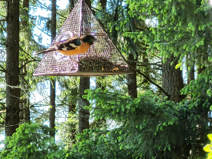 Birdnote talked about Black-headed Grosbeaks yesterday. I wonder if I’ve seen one and thought it was a Spotted Towhee. I’ll have to pay closer attention. https://www.birdnote.org/podcasts/birdnote-daily/black-headed-grosbeak-sings
