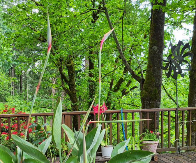 Holy smoke…my Bird of Paradise are blooming two months early! Must be because we had such a mild winter.
