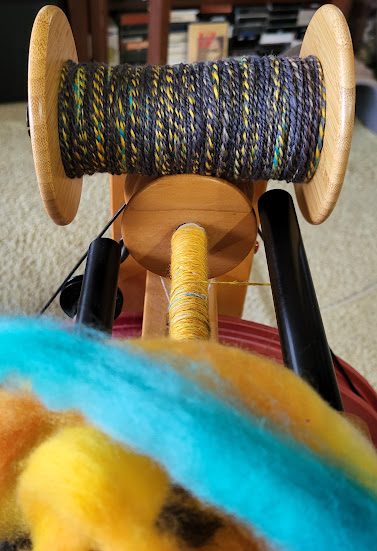 Back to spinning again. One finished bobbin and starting another one.