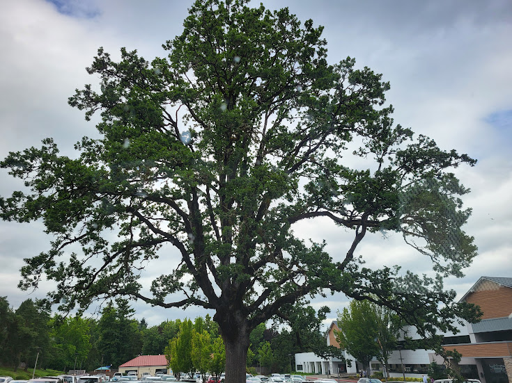 “My” oak tree at the retinologist’s. It’s a good time for me to find a quiet space to knit and relax while waiting for Nolemana.