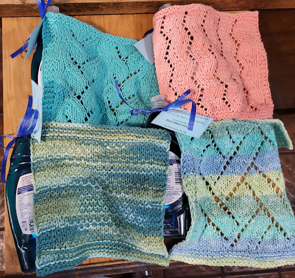 My friend Myrna knit these dishcloths, attached them to bottles of Dawn, and gave them to me to hand out on my food deliveries. What a wonderful blessing for folks she doesn’t even know.