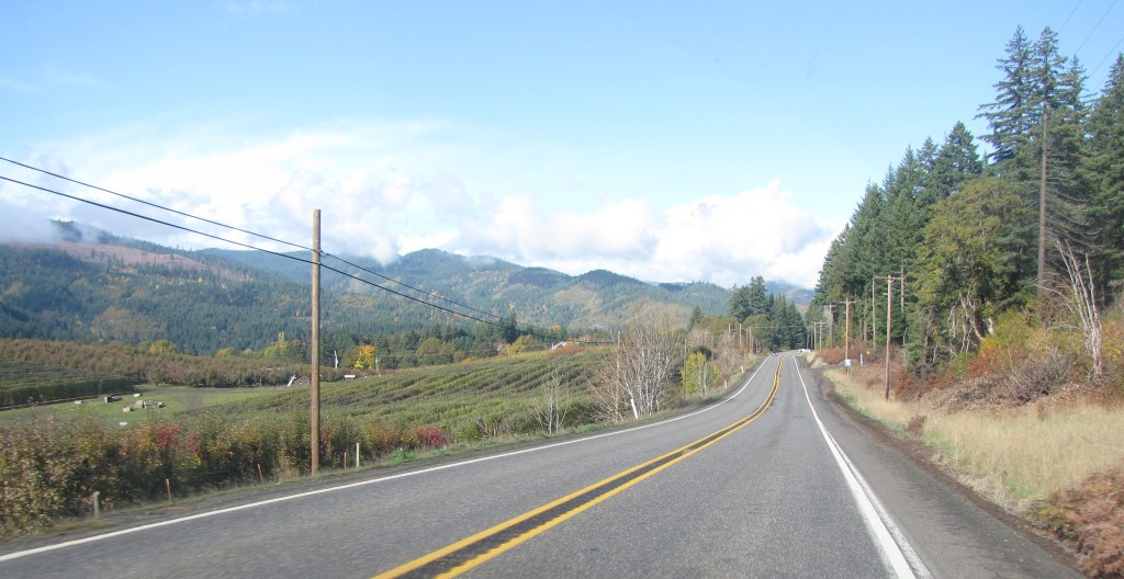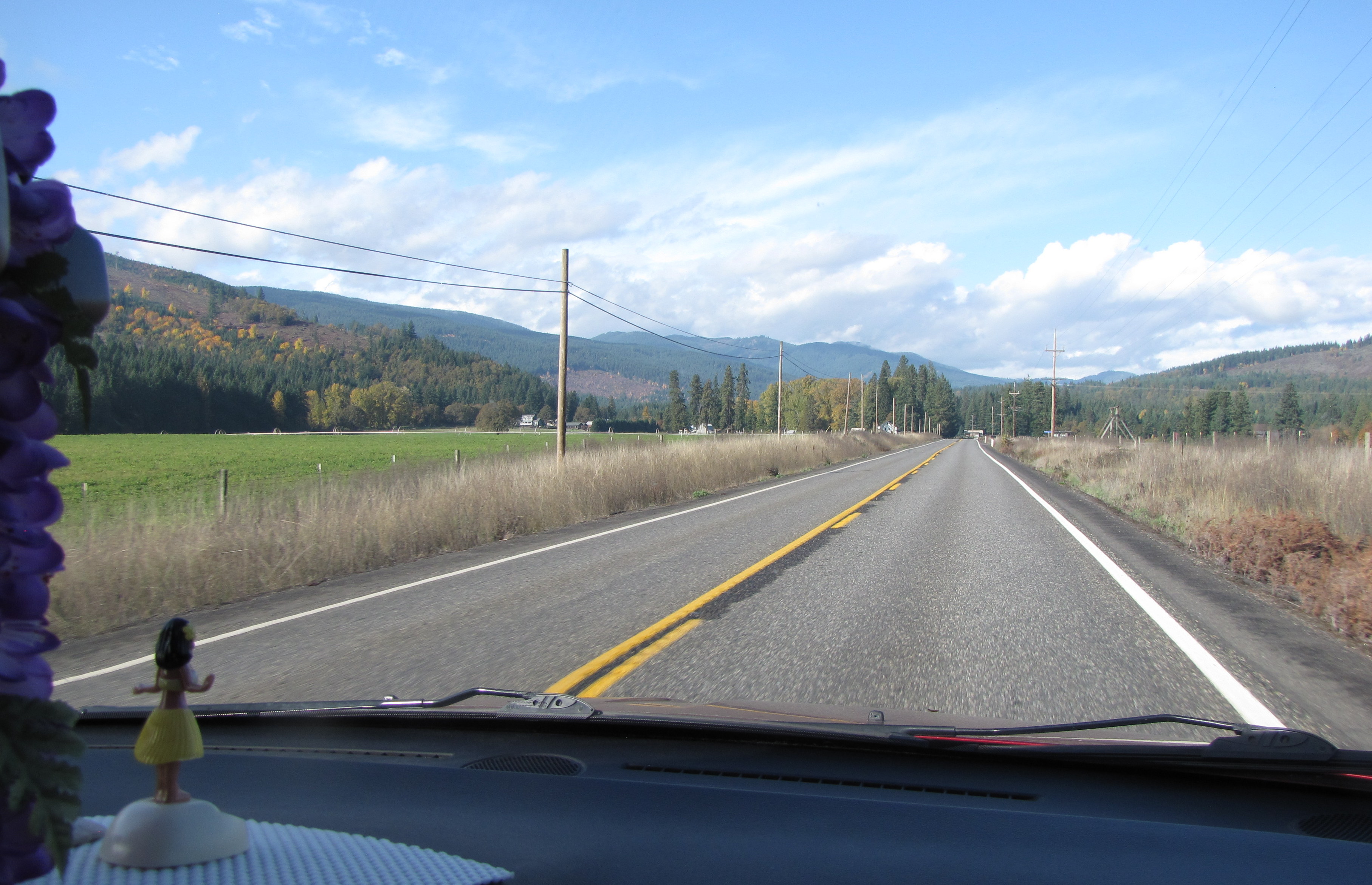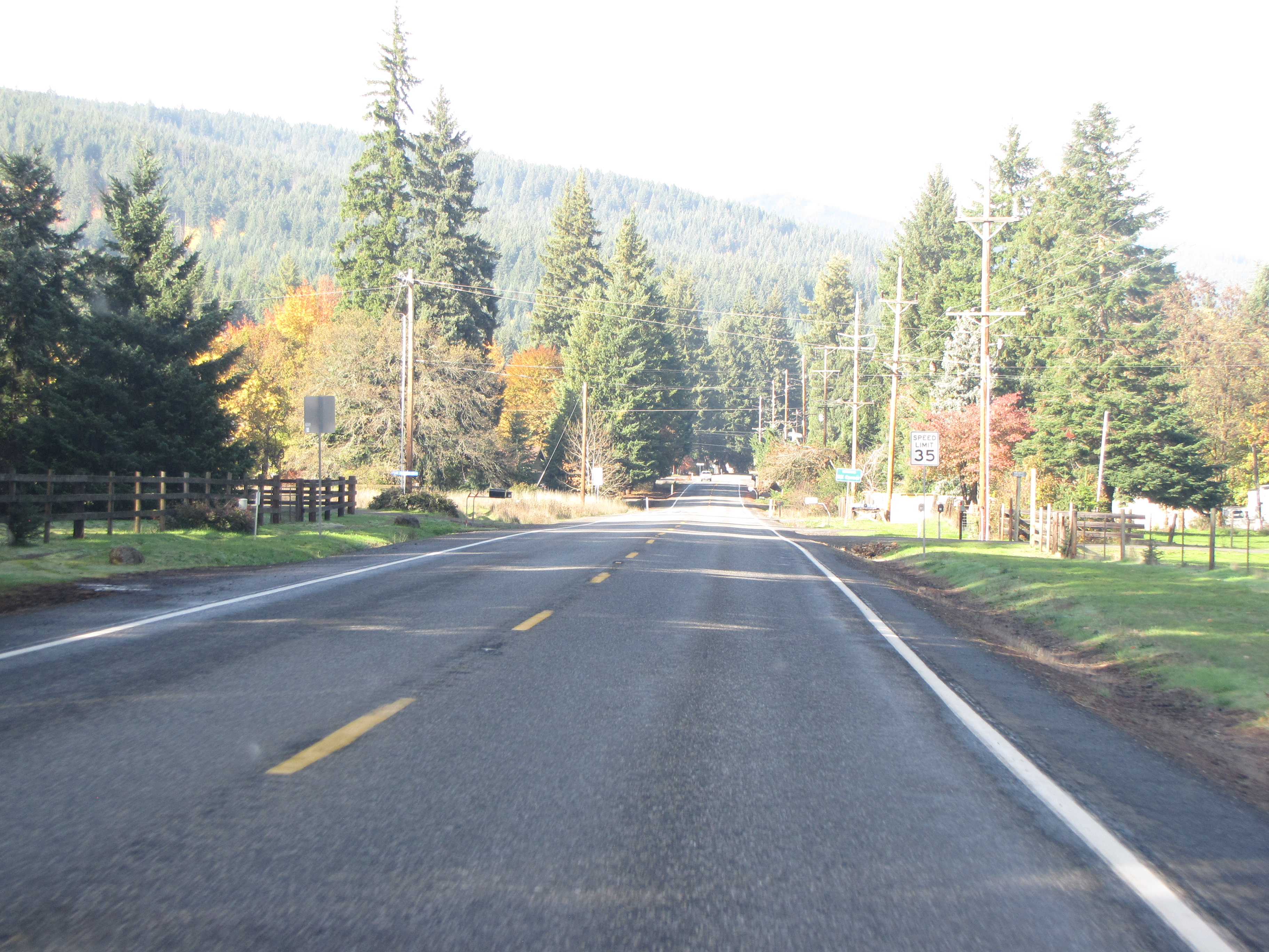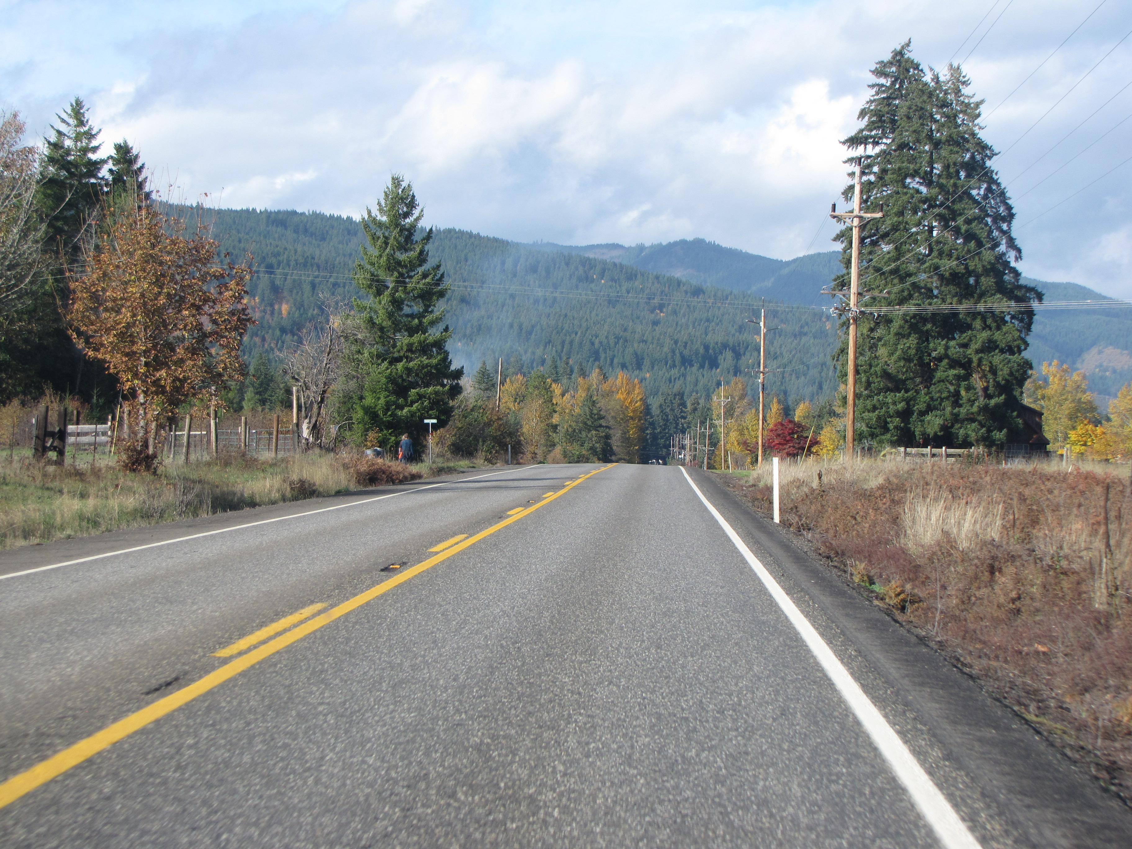 And here we go! The thing about the Pacific Northwest is that we can go mauka (toward the mountains) in two different directions! We just turned mauka (north) along Highway 141 in Washington State.